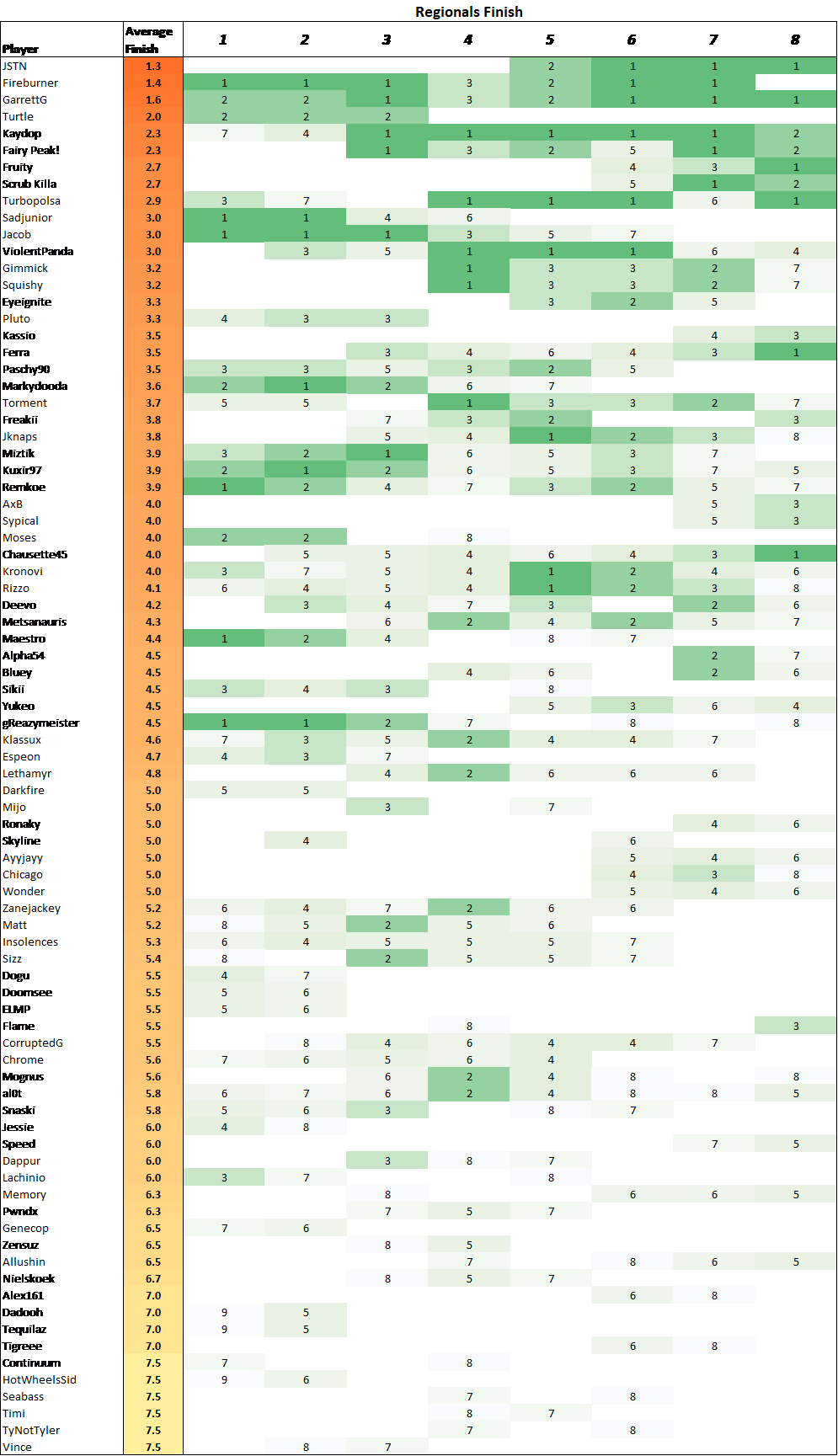 After 8 seasons, the dust is finally starting to settle, and the very best Rocket League players are rising to the top. Below are some images which shows how each player stacks up across the European and North American regions in Rocket League’s premier competition. In most cases, players with only 1 RLCS season are excluded. I recommend viewing this on a desktop rather than on mobile.